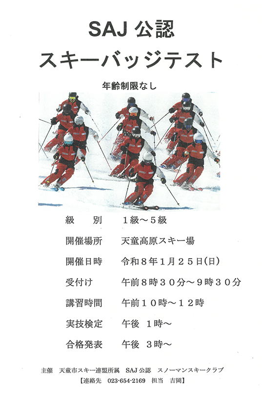 令和8年1月25日(日)に予定しております『2026 SAJ公認 スキーバッジテスト』の