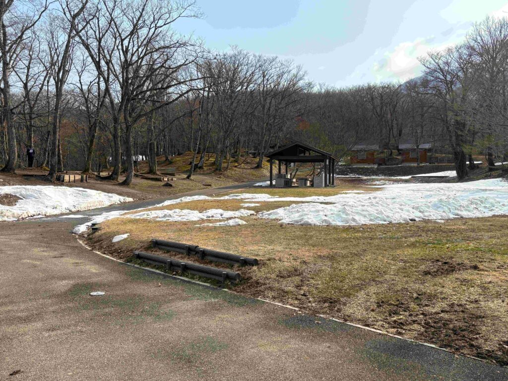キャンプ場にはまだ雪が残っておりますが、キャンプ場オープンの